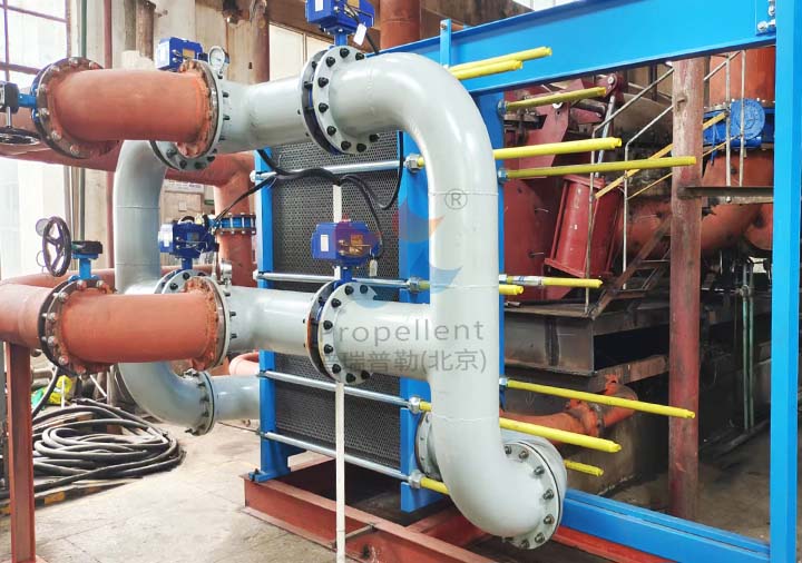 寬流道板式換熱器進行印染廢水余熱回收,將廢水中的熱量傳遞給工藝用水,節(jié)約能源,提高生產效率。